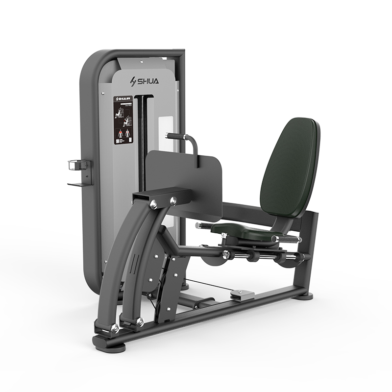 主要功能 锻炼股四头肌、臀大肌、腓肠肌等1、阻力形式:配重块;总重90kg;最小调节重量5kg2、垫类(坐/背/胸/肘垫):坐垫/背垫PU发泡成型;3、最大人体承重:150kg4、主要管材规格:龙门架平椭150502.0mm,副架平椭120502.0mm5、牵索形式:日本进口钢丝绳;¢5.6mm6、轴承:人本轴承;62057、滑轮:尼龙加纤;¢1